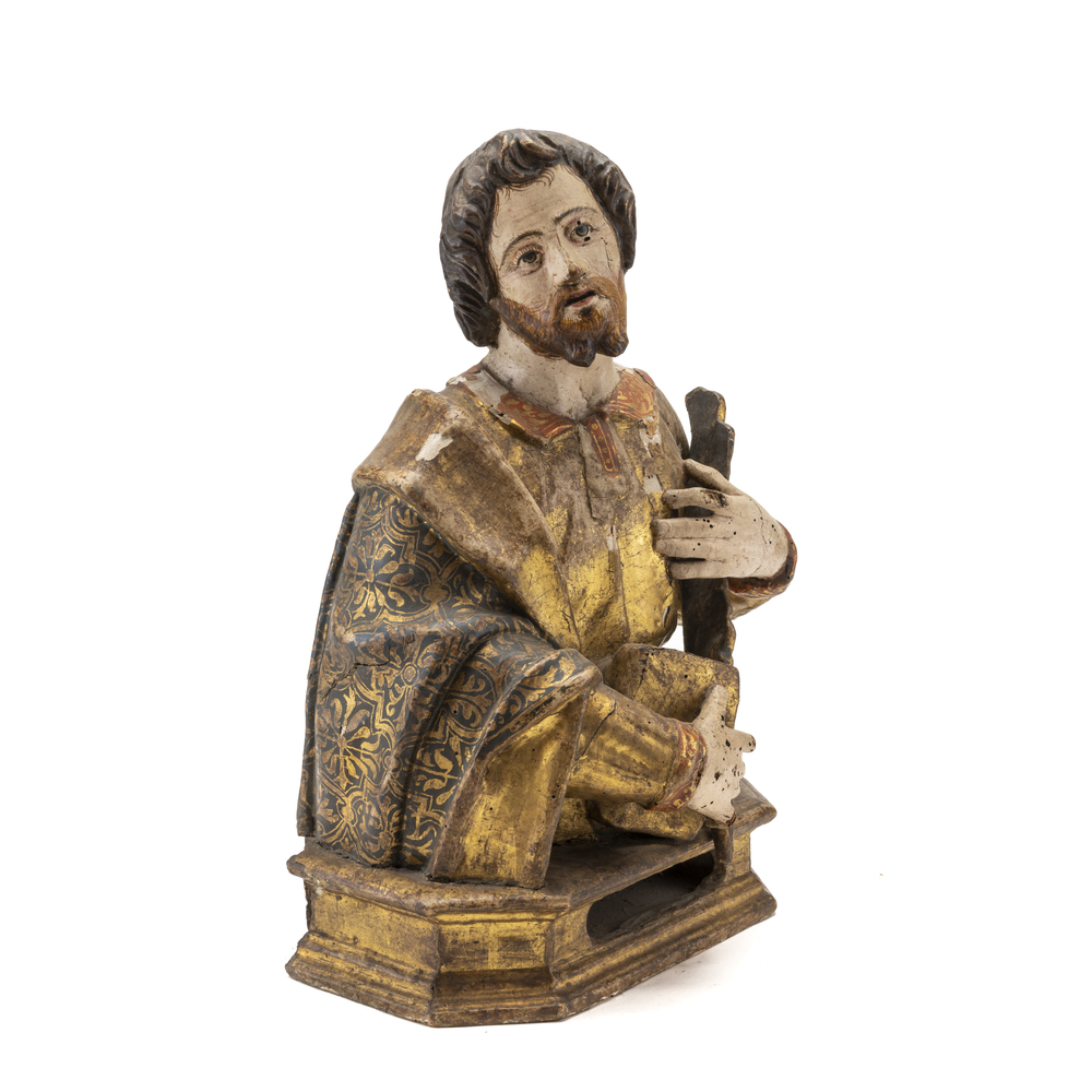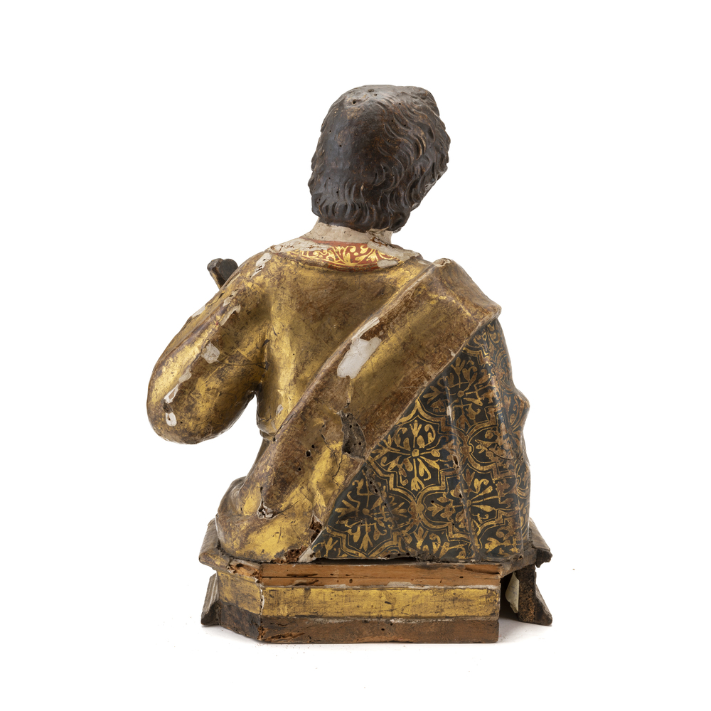 La splendida opera è da comparare per raffinatezza stilistica e finitura alla serie di 12 busti reliquari che nel 1619 l’intagliatore Aniello Stellato, con bottega a Napoli, ha eseguito per la Chiesa dei Girolamini