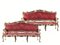 Coppia di divani, Italia centrale, metà sec. XVIII, en suite con il lotto precedente, in legno intagliato, dipinto bianco e dorato a mecca, spalliera sagomata e traforata a volute, braccioli mossi a giorno con estremità a ricciolo, fascia intagliata a volute contrapposte, gambe sinuose su piedi a ricciolo, lungh. cm 213, ricoperti in damasco rosso, lievissimi danni (2)