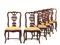 Sei sedie, Toscana, seconda metà sec. XVIII, in noce intagliato, spalliera sagomata centrata da cartella traforata a vaso stilizzato, gambe mosse con traversa ad H, sedili ricoperti in lino giallo (6)