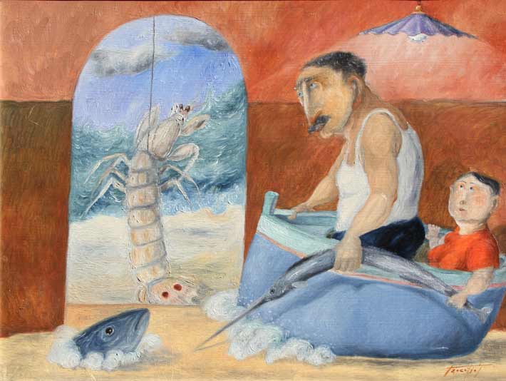 Salvatore PROCOPIO I sogni del pescatore Olio su tela cm 35 X 45 Autentica dell’artista su fotografia Firma ‘Procopio’ (in basso a destra)