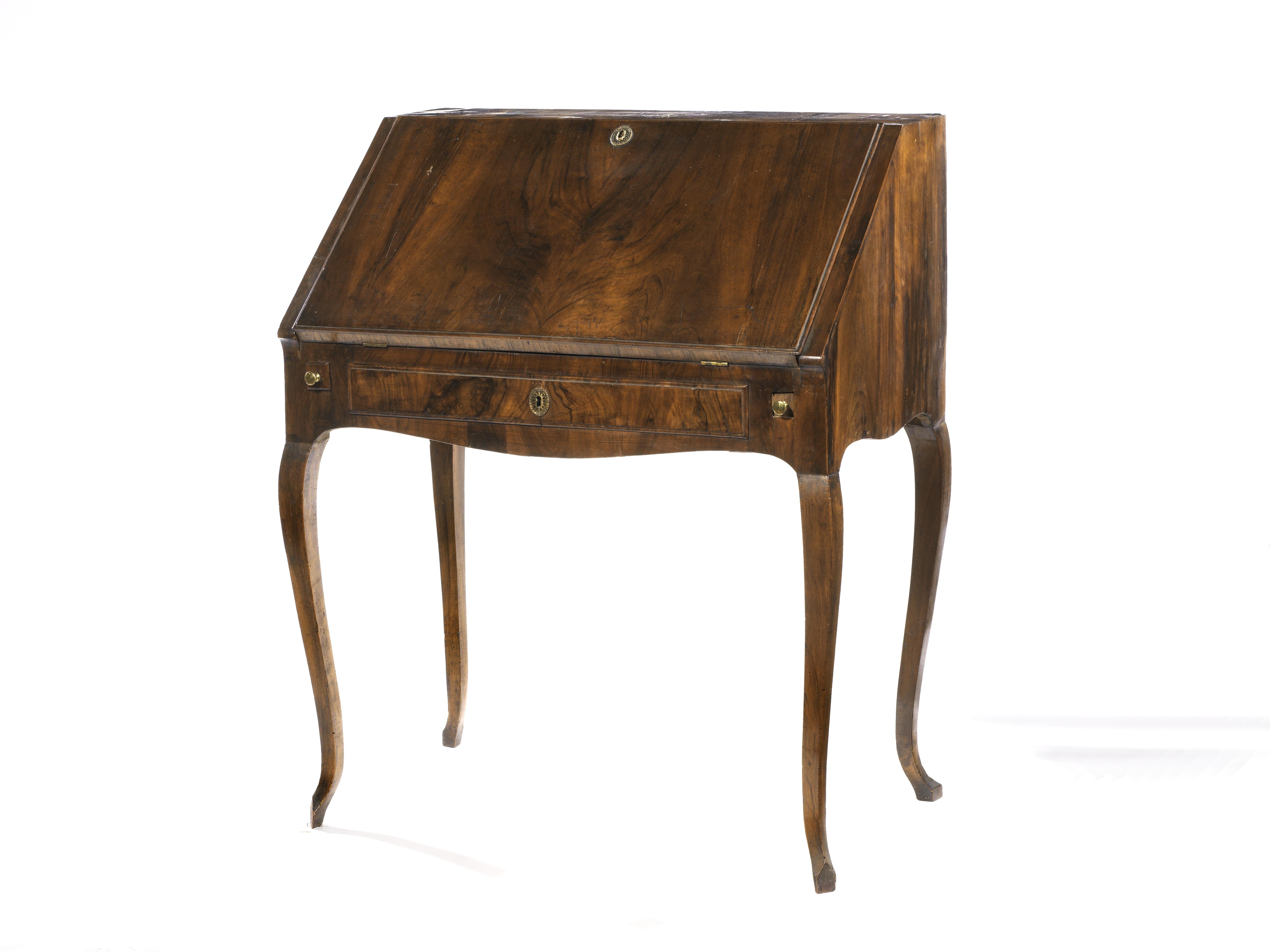 Piccolo scrittoio, Toscana, seconda metà sec. XVIII, in radica di noce, piano...
