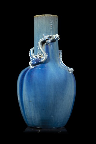 Lot 1569 | Vaso a bottiglia a invetriatura nei toni del rosso e dell'azzurro con drago a r