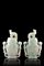 Coppia di piccoli vasi con coperchio in giadeite bianca e verde mela, decorati