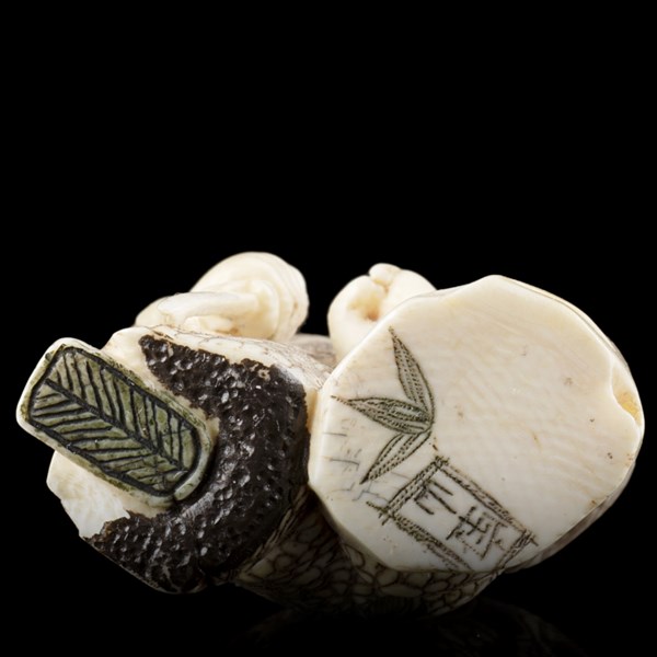 Lot 1603 | Lotto composto da sei netsuke in avorio di cui una a bottone, marchi alle basi
