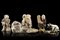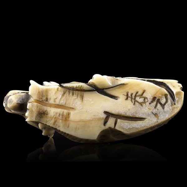 Lotto composto da sei netsuke in avorio di cui una a bottone, marchi alle basi