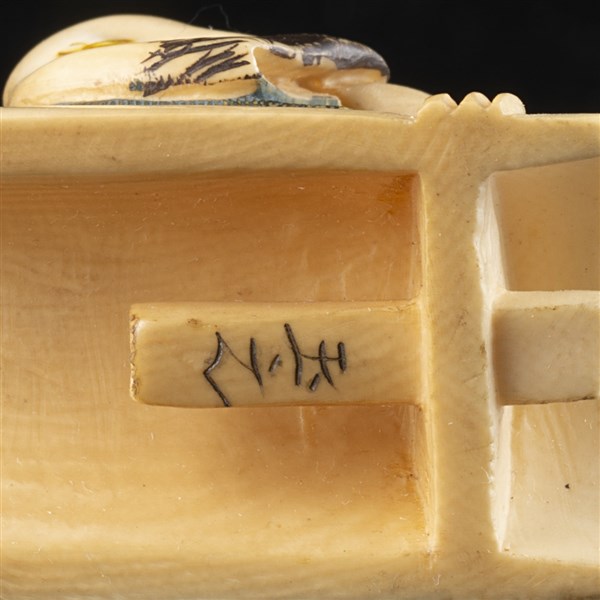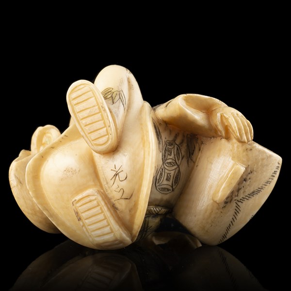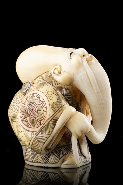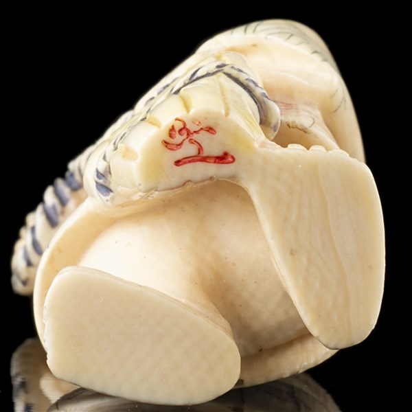 Lot 1605 | Lotto composto da sei netsuke in avorio di cui una raffigurante un pellicano Gi