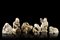 Lotto composto da sei netsuke in avorio di cui una raffigurante un pellicano Gi
