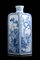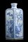 Bottiglia in porcellana bianca e blu, decorata a riserve con motivi floreali e