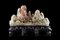 Grande gruppo in pietra saponaria raffigurante paesaggio montuoso con fitta vegetazione e pagode, base pietra saponaria (difetti) Cina, fine dinastia Qing (1644-1911) (l. 24 cm.)