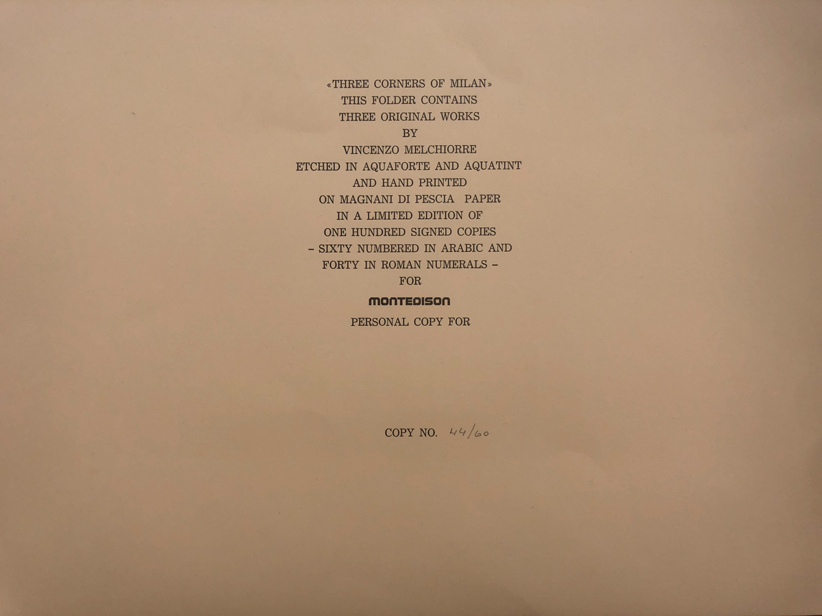 Opere originariamente facenti parte di una cartella realizzata appositamente per Montedison, di cui si allega colophon di presentazione recante numerazione a matita (Esemplare 44/60)