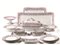Composizione: 82 piatti piani, 58 piatti da frutta; 29 piatti fondi; 1 zuppiera con coperchio; 2 vassoi tondi in gradazione; 2 salsiere; 4 raviere; 4 alzate basse; 1 alzata alta; 9 vassoi rettangolari in gradazione