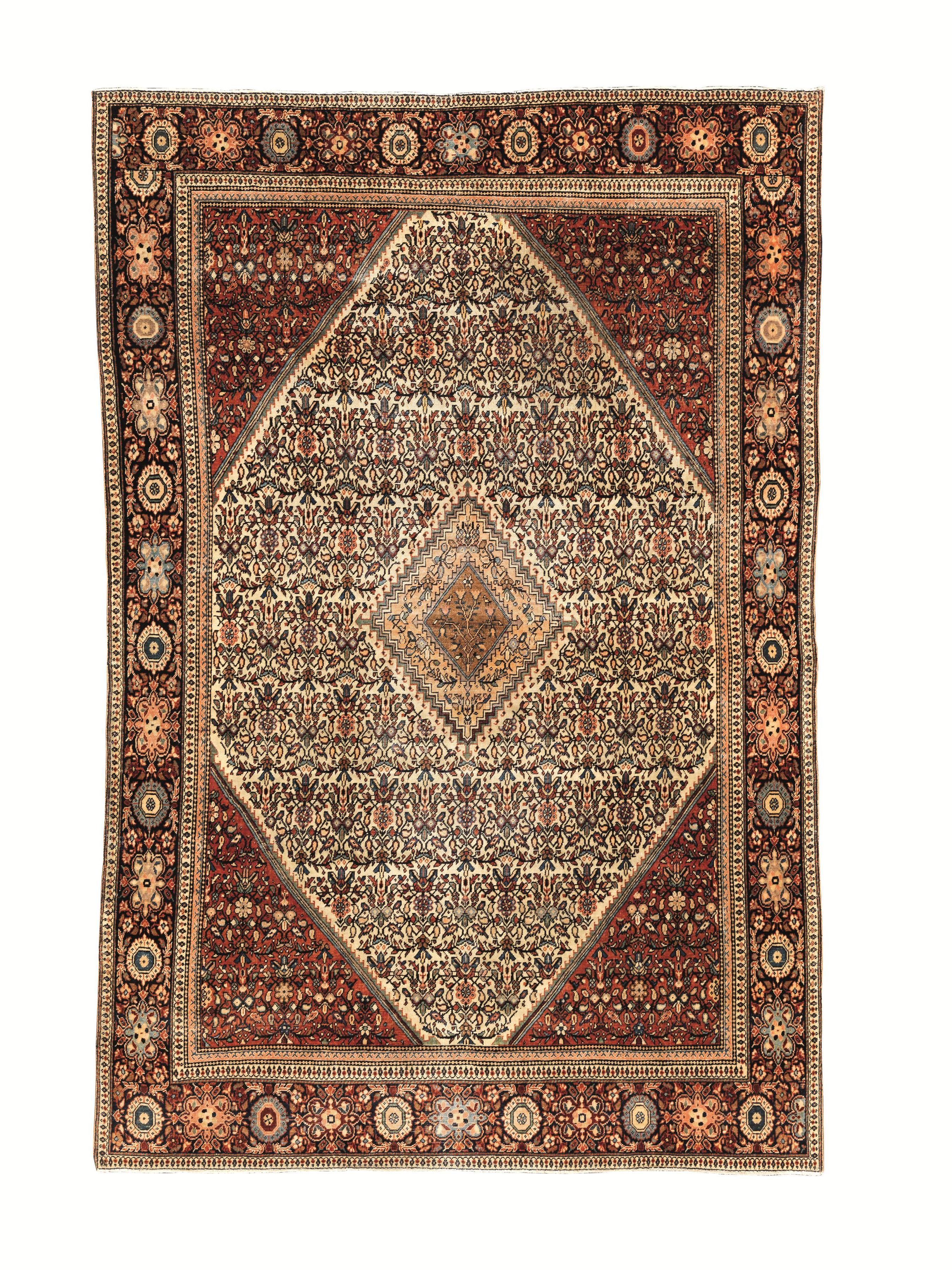 Lot 218 | Tappeto persiano Saruk, sec. XIX, fondo avorio con decoro a cartiglio rosa e...