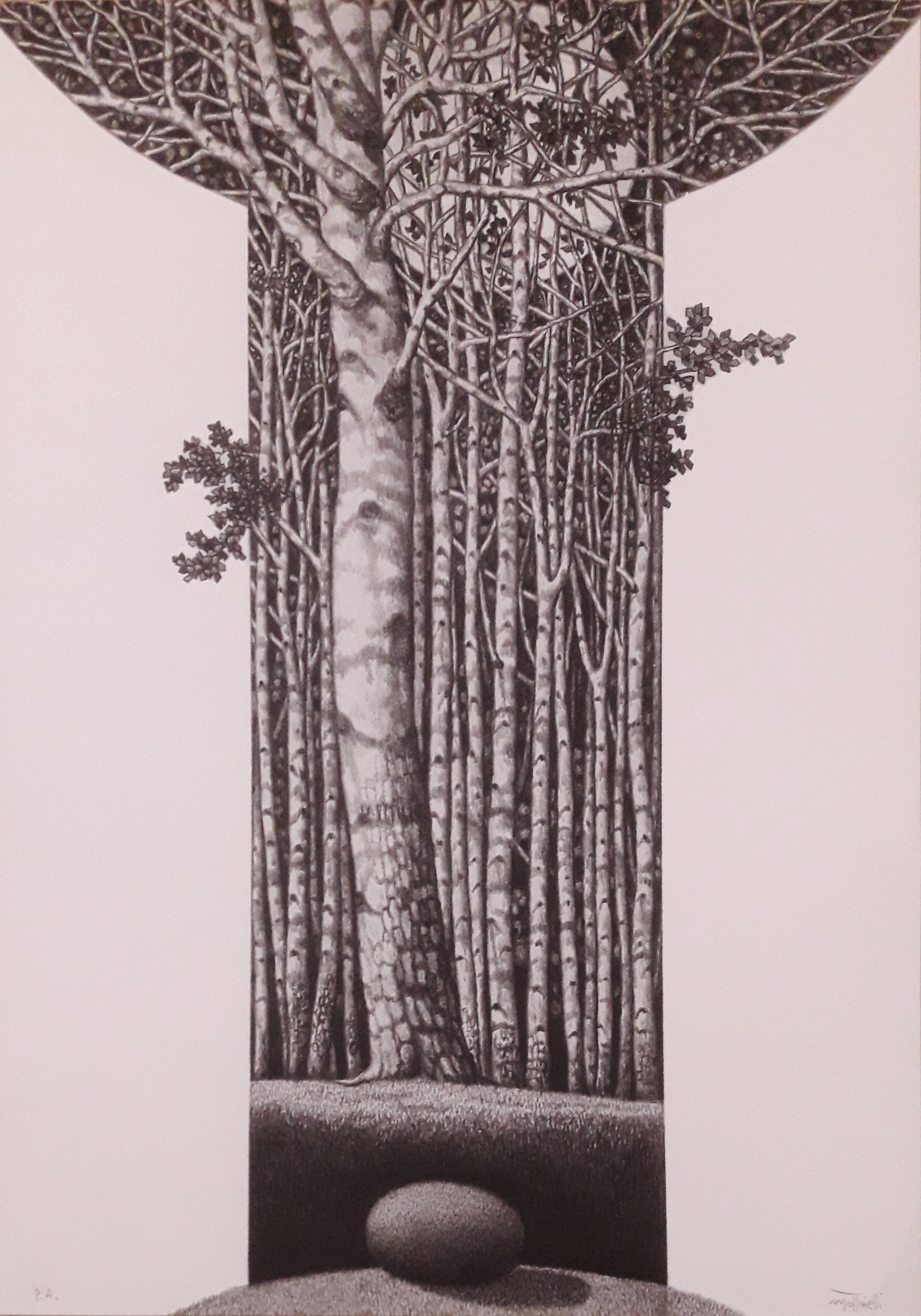 MOTTINELLI GIULIO Valcamonica 1943 “Senza titolo” litografia cm 50x70. Firmata sul fronte in basso a destra,tiratura P.A. in basso a sinistra.