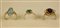 Firmato, datato. Tre anelli in oro giallo di cui uno con opale, uno con smeraldo e uno con ametista e zirconi. XX secolo.