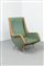 Coppia di poltrone con imbottitura rivestita in skai, gambe in ottone.