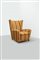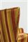 Poltrona con struttura in legno, imbottitura rivestita in tessuto.