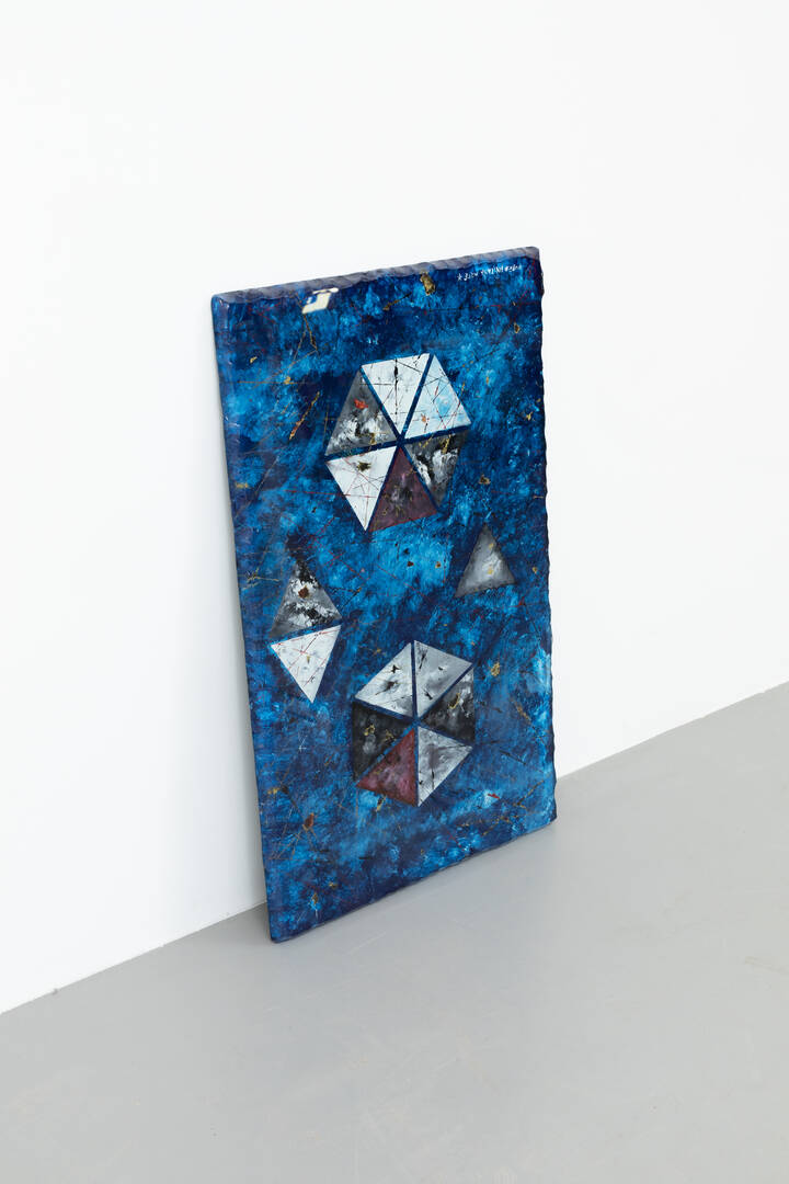 Piano decorato con la tecnica del verre églomisé. Firmato in basso