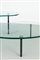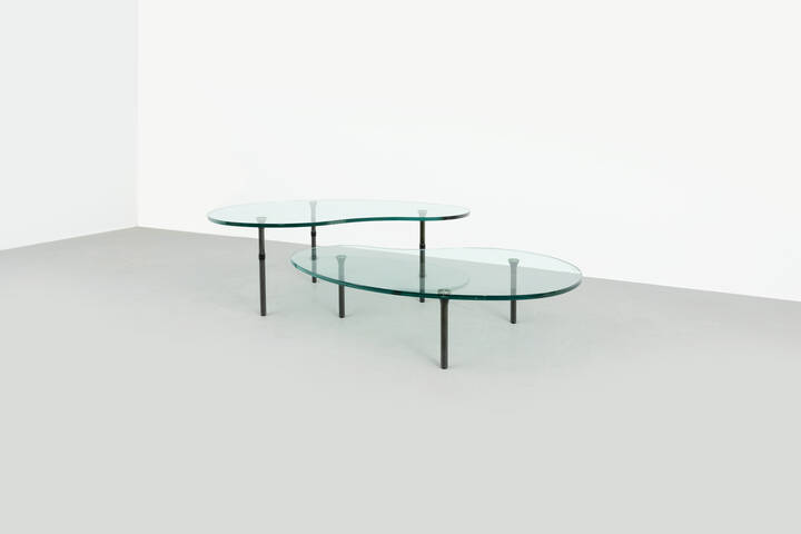 Struttura in ottone nichelato spazzolato, piano in cristallo.