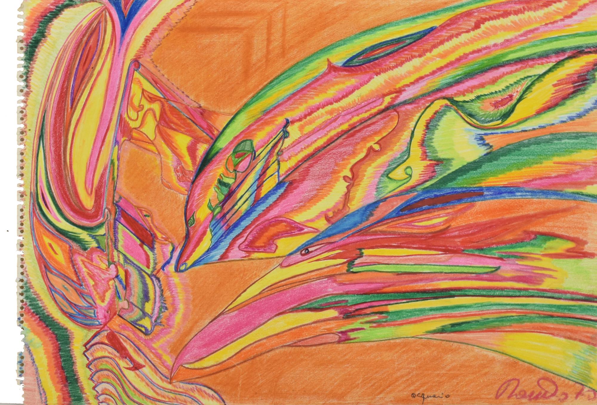 Dando ACQUARIO tecnica mista su carta, cm 34,7x50,2 firma, titolo e data...