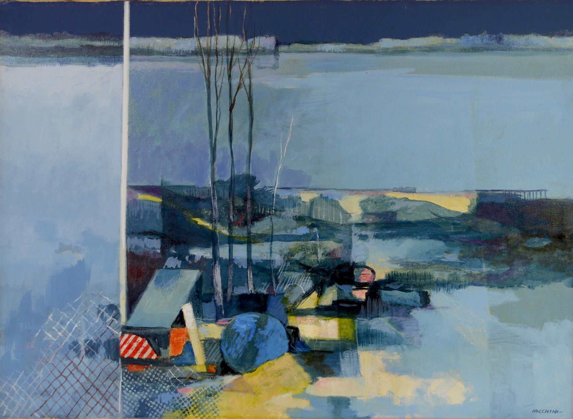 Giuseppe Jacchini IL PO A CASALMAGGIORE gouache e tempera su cartone, cm...