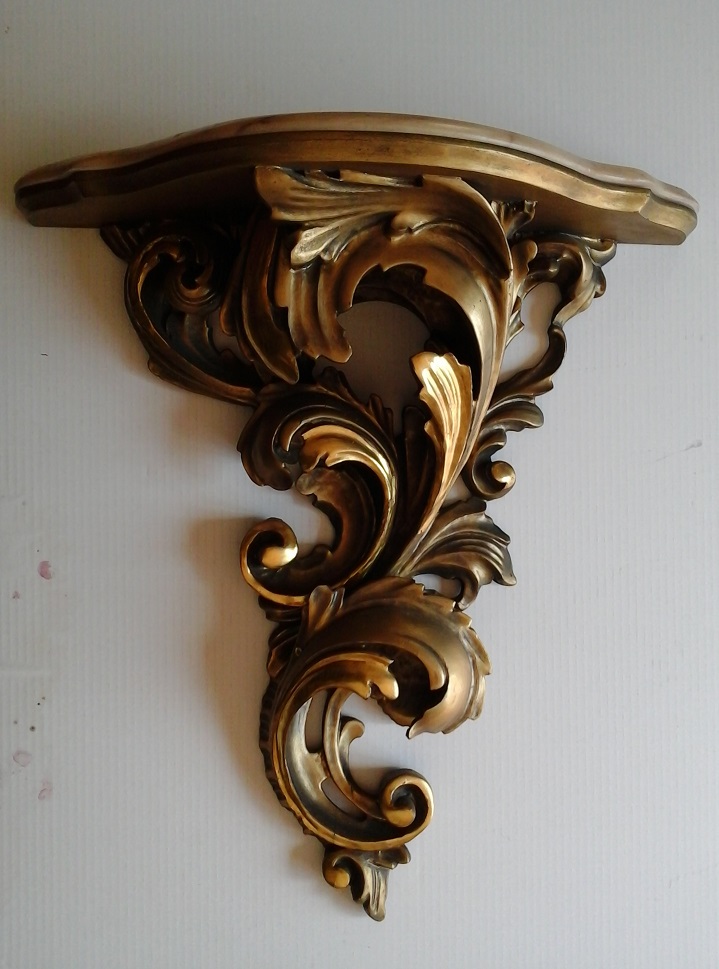 CONSOLE DA PARETE IN LEGNO SCOLPITO E DORATO CON PIANO IN MARMO ROSA CM.54X20...