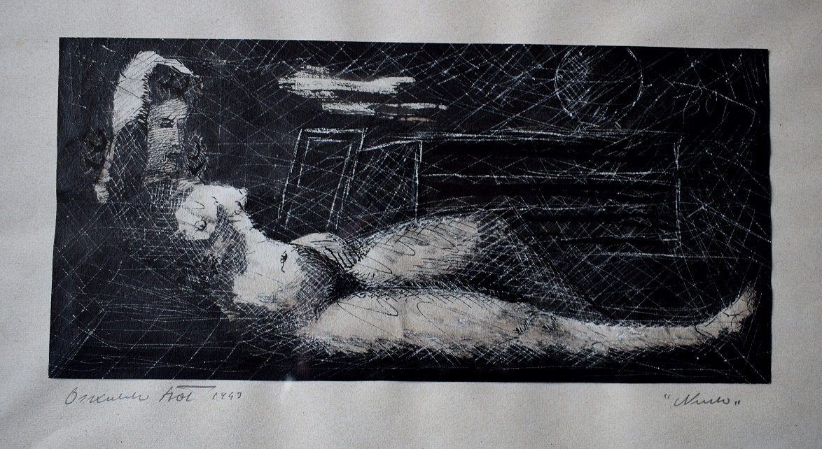 BOT (BARBIERI OSVALDO) (1895-1958) - NUDO - GRAFFITO SU CARTA CM.13X27,5 - FIRMATO E DATATO 1949 IN B.A SINISTRA