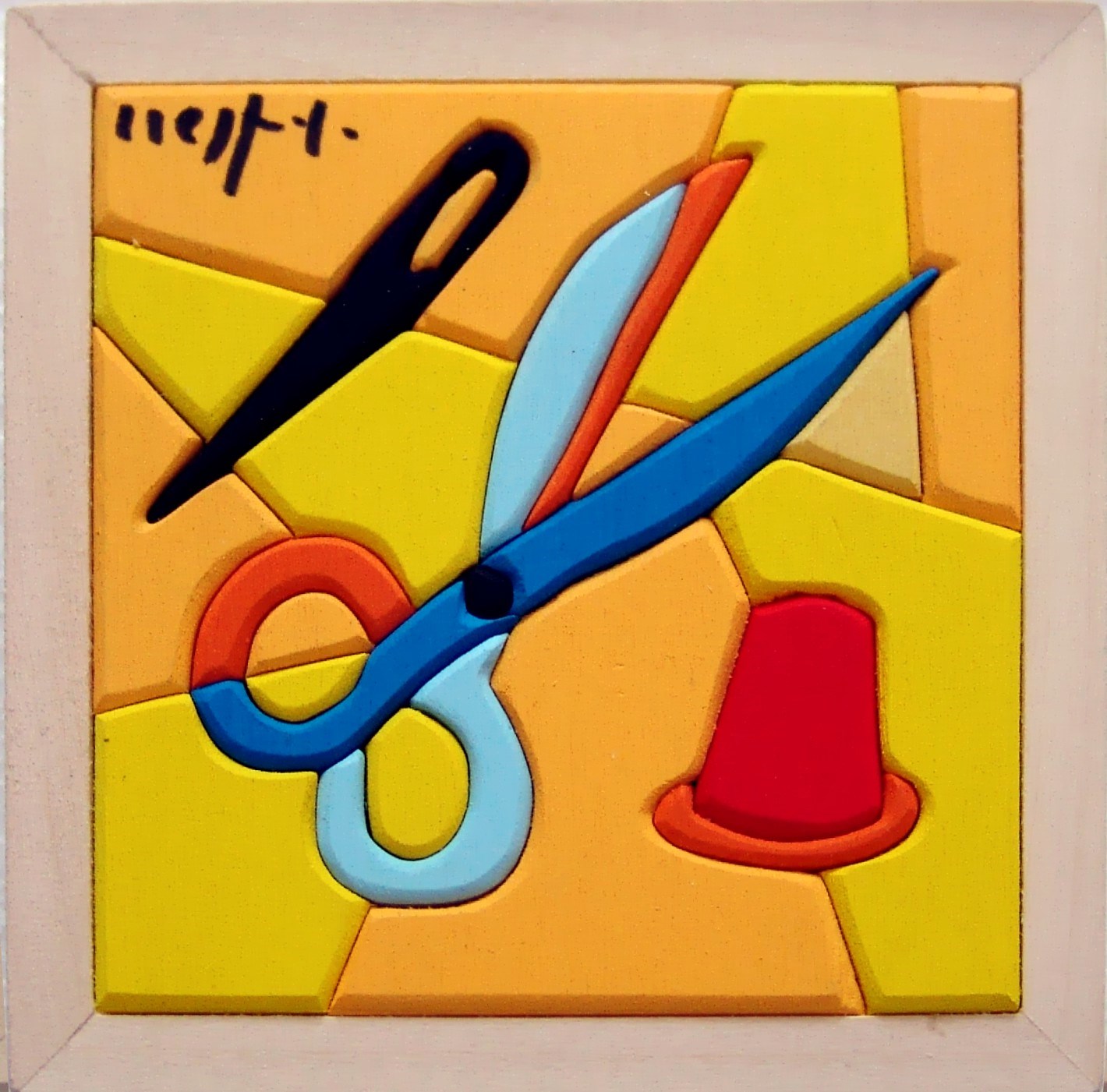 firma dell'artista in alto a sinistra, opera contenuta in teca di plexiglas