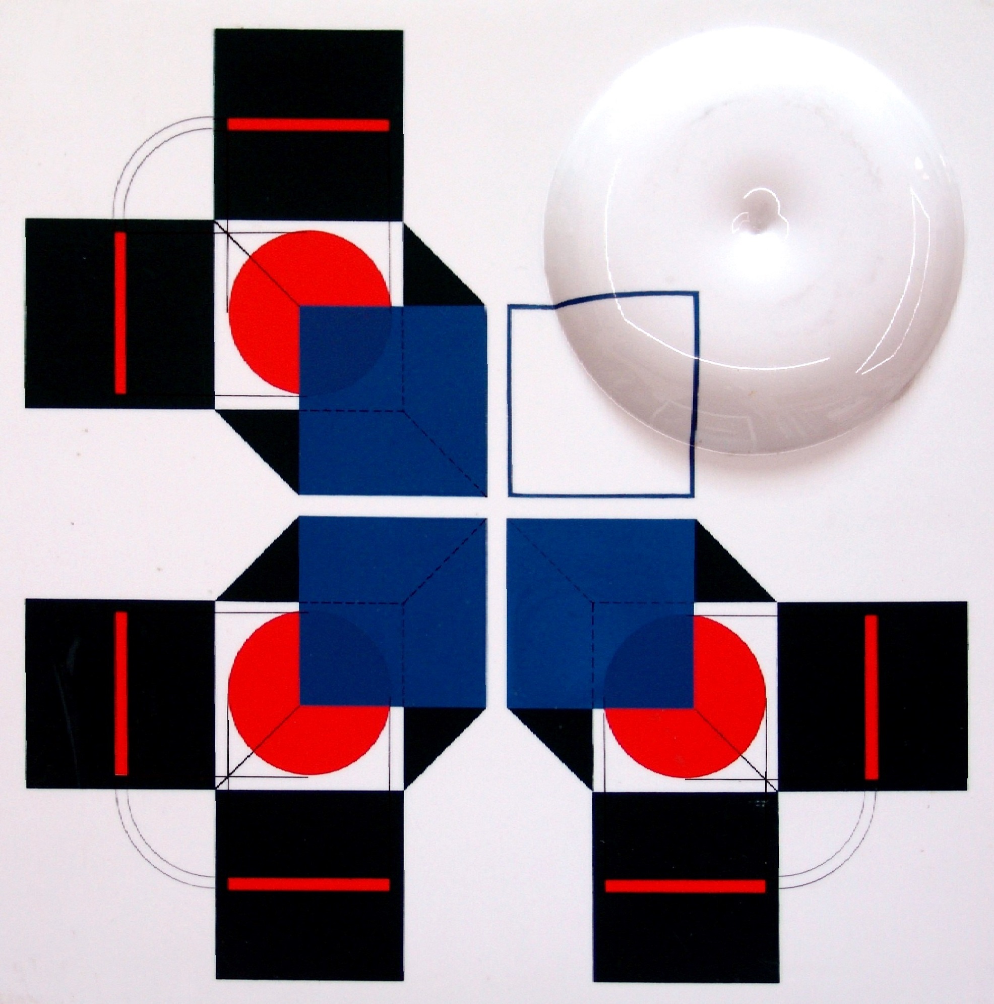 serigrafia su polistirolo termoformato, 50x50x5 cm