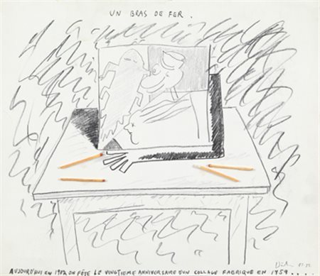 ERIK DIETMAN Un bras de fer, 1982 matita e fiammiferi su cartoncino cm...