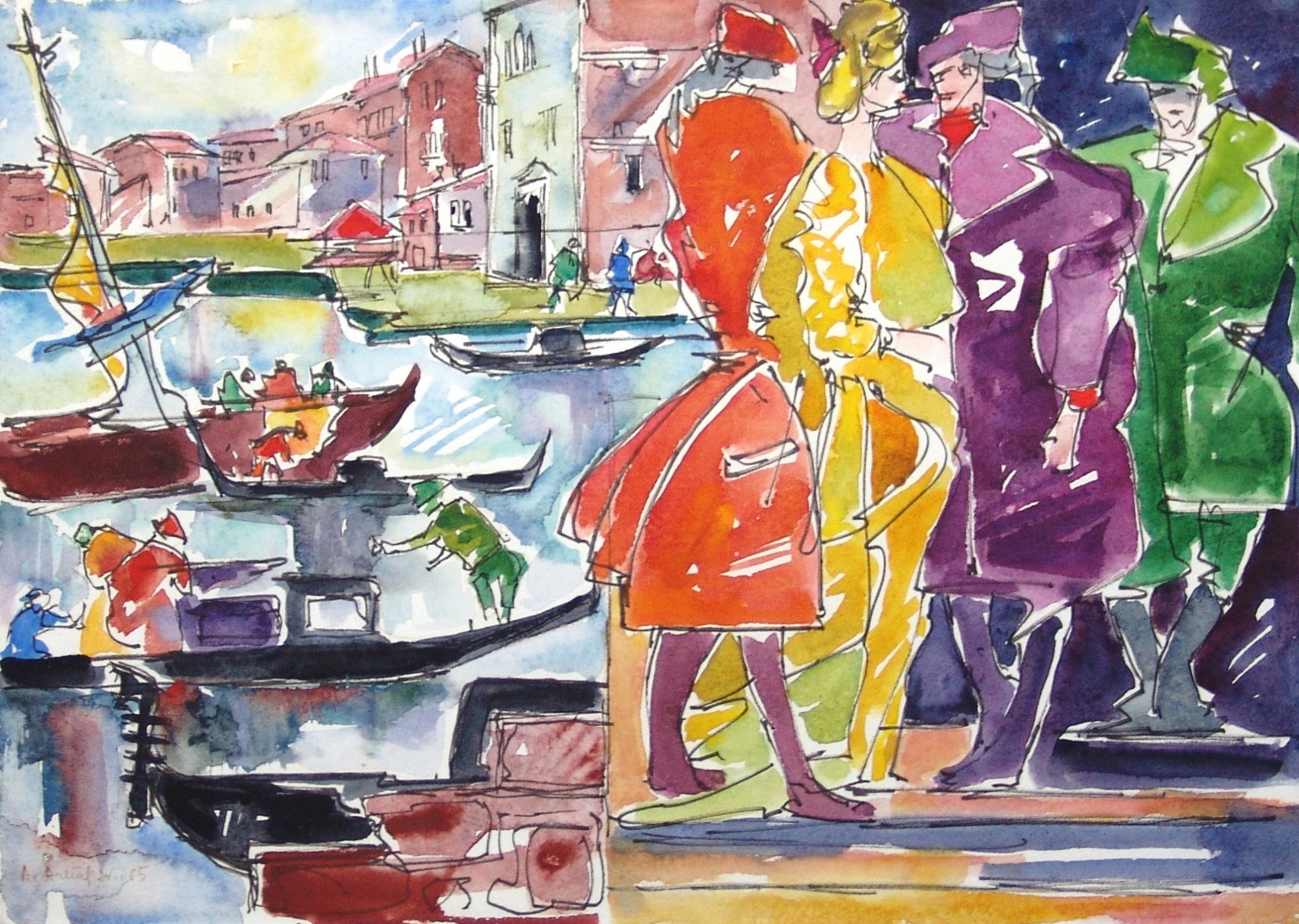 PHILIPPE ARTIAS, Venezia con gondole e veneziani, 1985