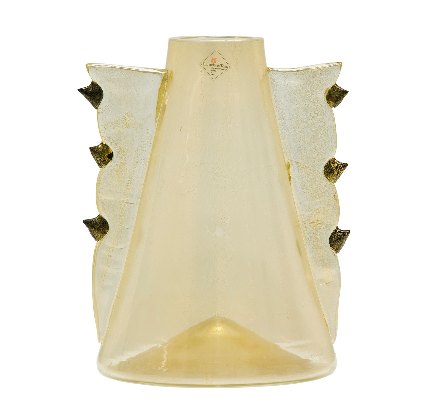 in vetro soffiato con avventurina. Morise laterali applicate.