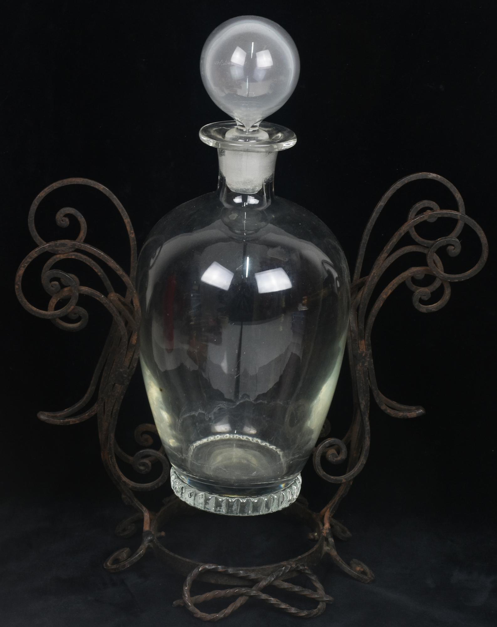 Lot 11 | BOTTIGLIA IN VETRO con supporto in ferro forgiato, decorato con nodo Savoia h...