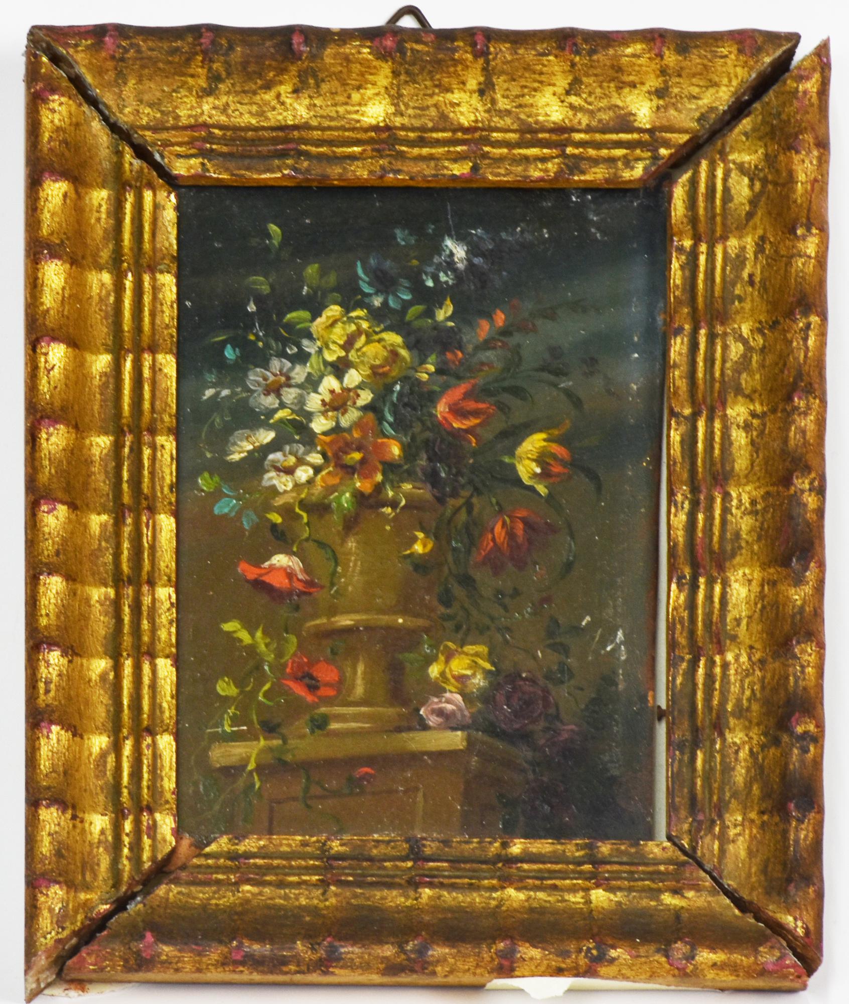 Lot 45 | DIPINTO AD OLIO SU CARTONE raffigurante vaso con fiori entro cornice linea...