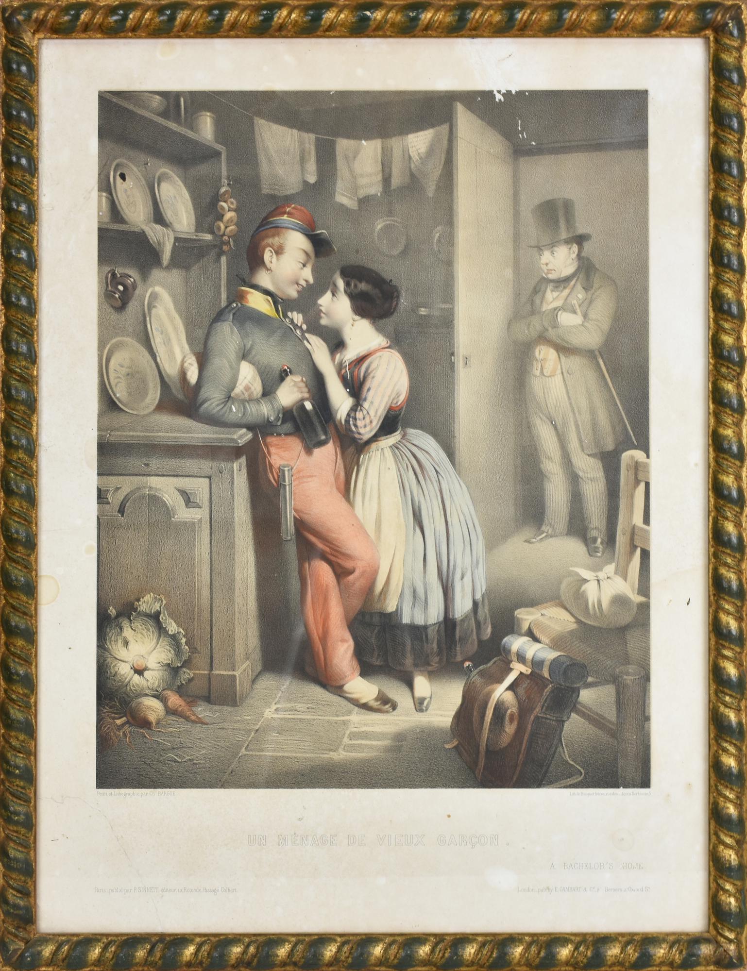 Charles Bargues UN MENAGE DE VIEUX GARCON litografia a colori su carta, cm...