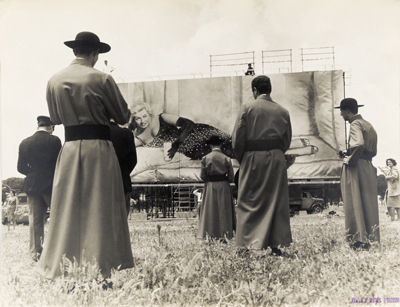 TAZIO SECCHIAROLI (1925 – 1988) Boccaccio '70 1962 stampa ai sali d'argento vintage 24x30 cm timbro sul retro dell'agenzia immagine tratta dal backstage di "Boccaccio '70" atto II: Le tentazioni del dottor Antonio, diretto da Federico Fellini Boccaccio '70 1962 vintage silver print 24x30 cm agency's credit stamp on the verso image taken from "Boccaccio '70"'s backstage act II:Le tentazioni del dottor Antonio, directed by Federico Fellini