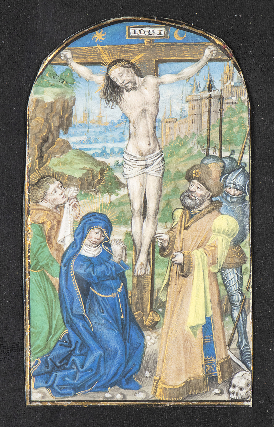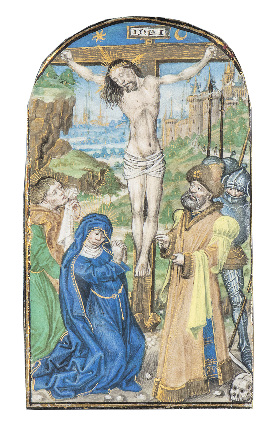 Miniatura su pergamena, cm. 8,5x5,1. Entro cornice a tabernacolo ligneo