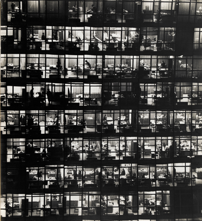 CESARE COLOMBO (1935) Milano, uffici grattacieli anni ‘60 stampa ai sali d'argento vintage 30,6x29,2 cm timbro sul retro Cesare Colombo - Milano Milano, uffici grattacieli Sixties vintage silver print 30,6x29,2 cm Cesare Colombo' s - Milano credit stamp on the verso