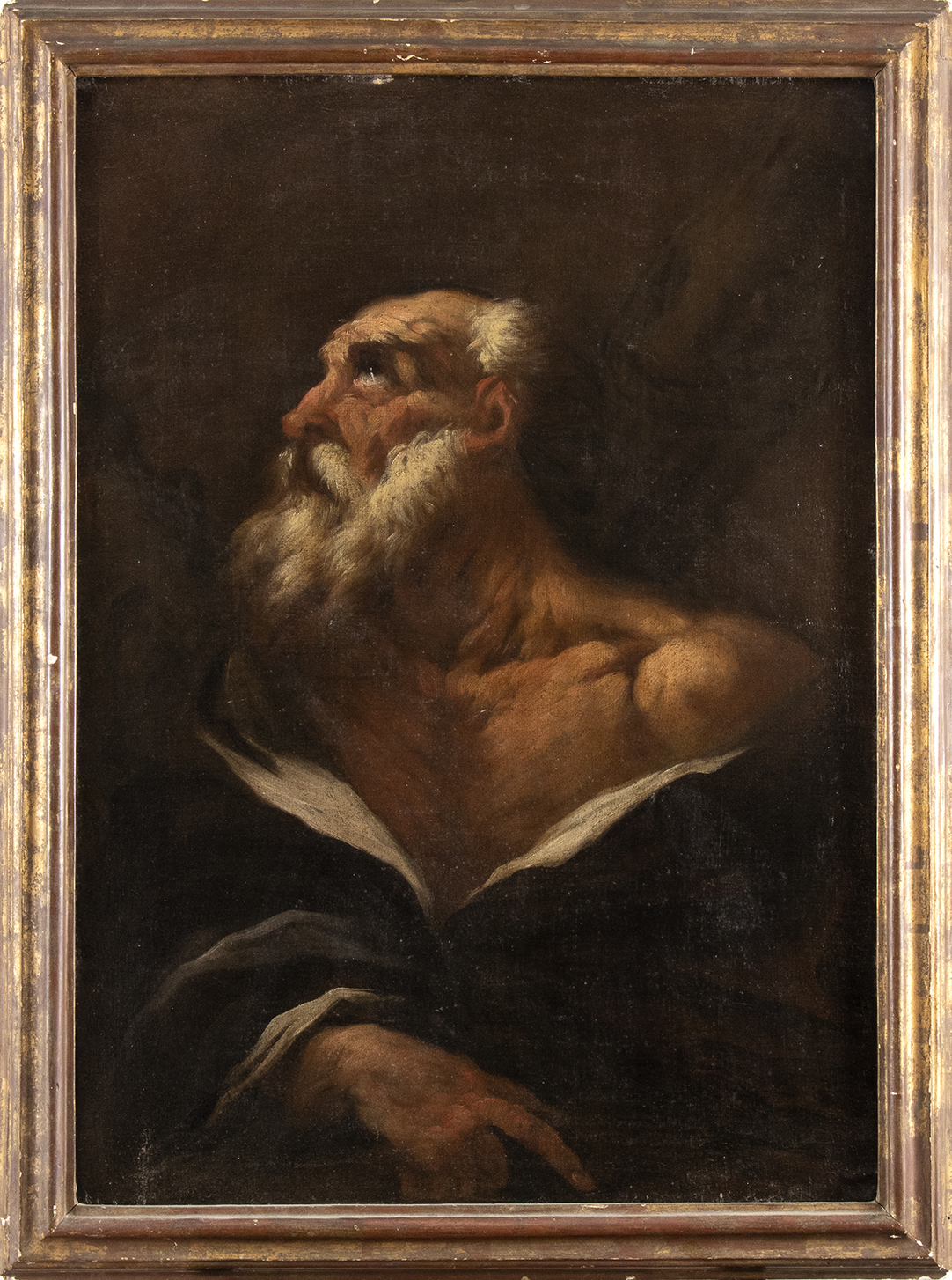 Il dipinto è accompagnato dall'expertise del Prof. Giancarlo Sestieri che riferisce l'opera a Giovanni Antonio Pellegrini e individua ilprotagonista dell'immagine come Sant'Andrea in ragione della croce incrociata che si intravede sullo sfondo.Chiare analogie fisionomiche si possono riscontrare con vari volti di vecchio pesenti nelle opere di Pellegrini, tra cui possiamo ricordare qulli nella Sacra Famiglia, San Giovanni e santi nell'Oratorio dell'istituto delle Nobili dimesse di Padova, o nella Testa di San Giovanni Battista presentata a San Marco nella chiesa parrochiale di Vescovana.