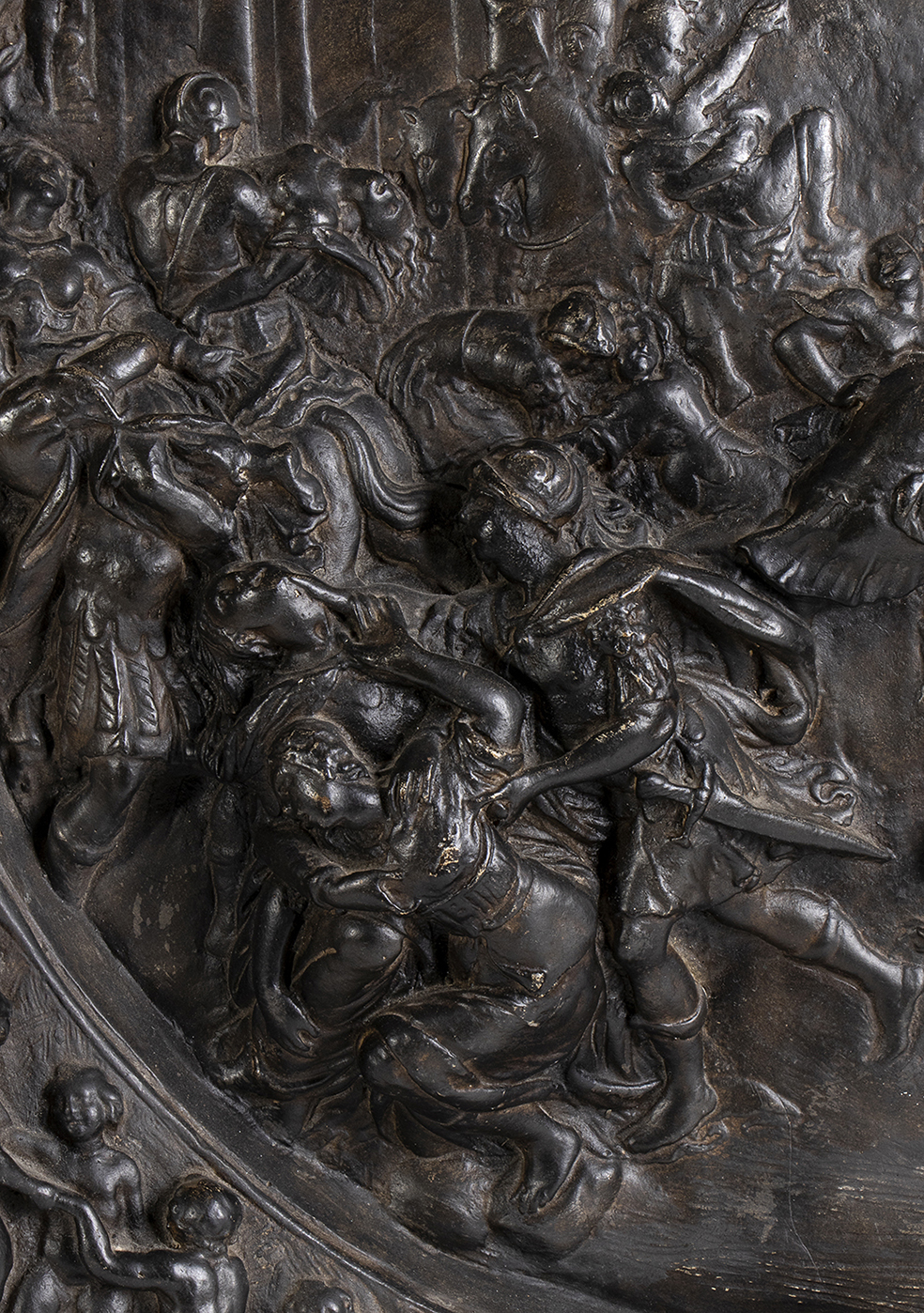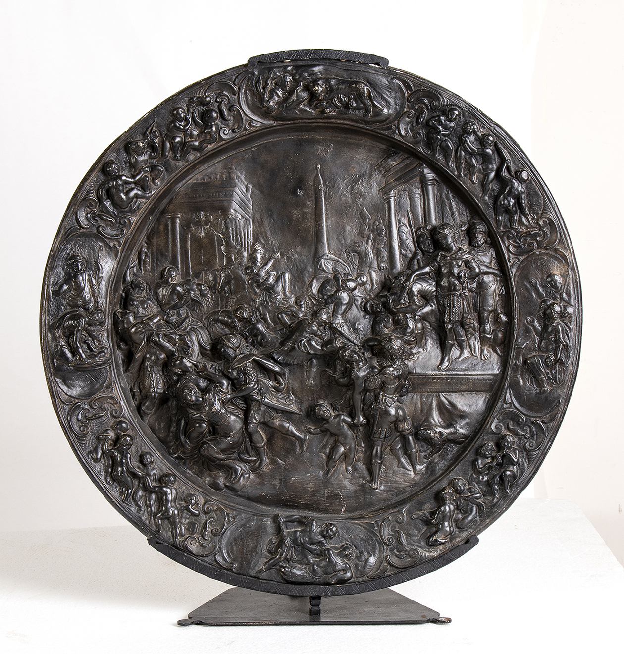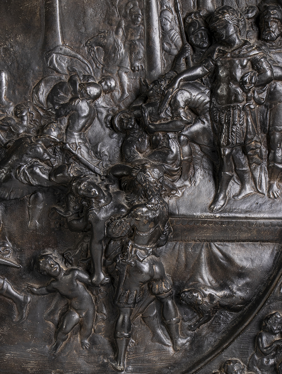 Lot 201 | Rotella da parata in cartapesta con al centro rilievo raffigurante la Strage degli innocenti
