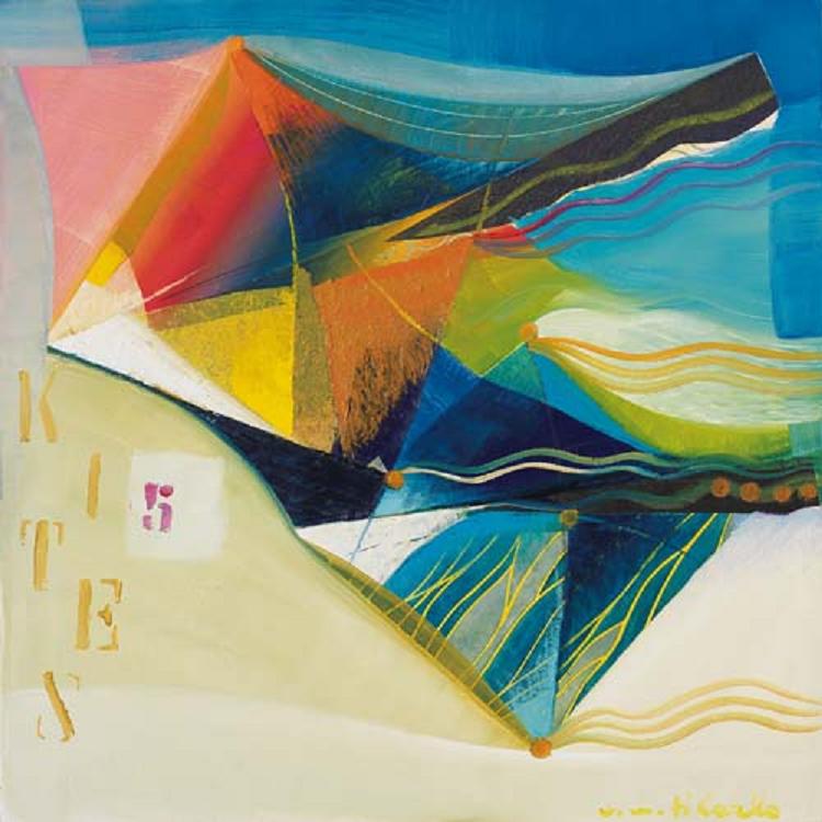 VITTORIOMARIA DI CARLO S. Marco in Lamis (Fg) 1939  Kites (aquiloni), 2008 olio e collage su tela cm. 70x70, firma in basso a destra e al retro, dichiarazione d'autenticità e archivio dell'artista numero 199/2008 su foto.