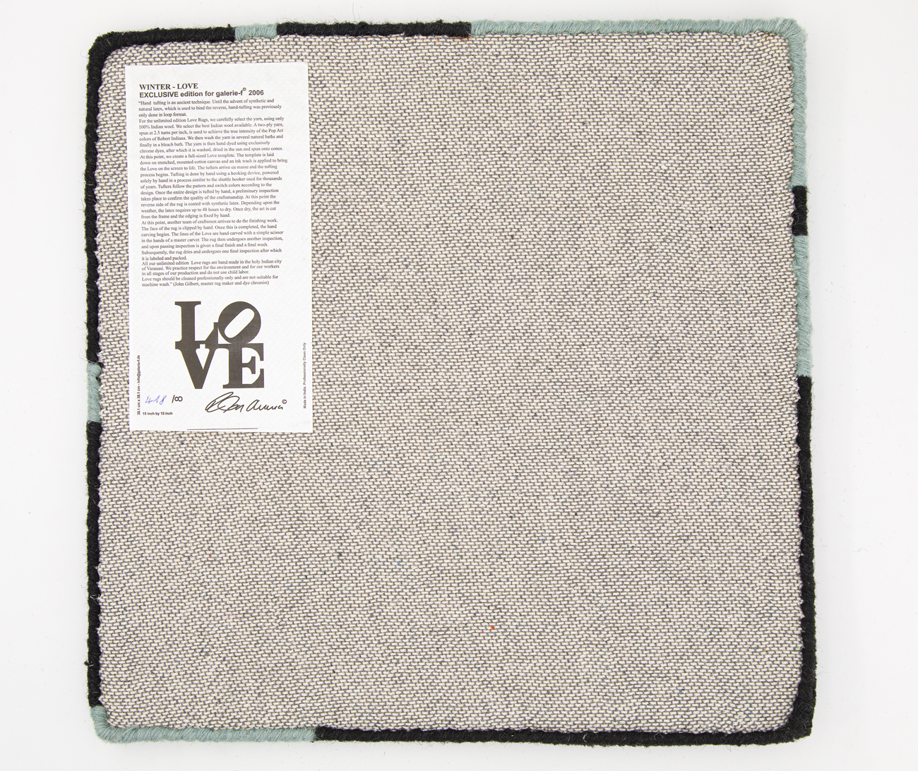 Etichetta Robert Indiana con numerazione (Esemplare 418/∞) al retro
