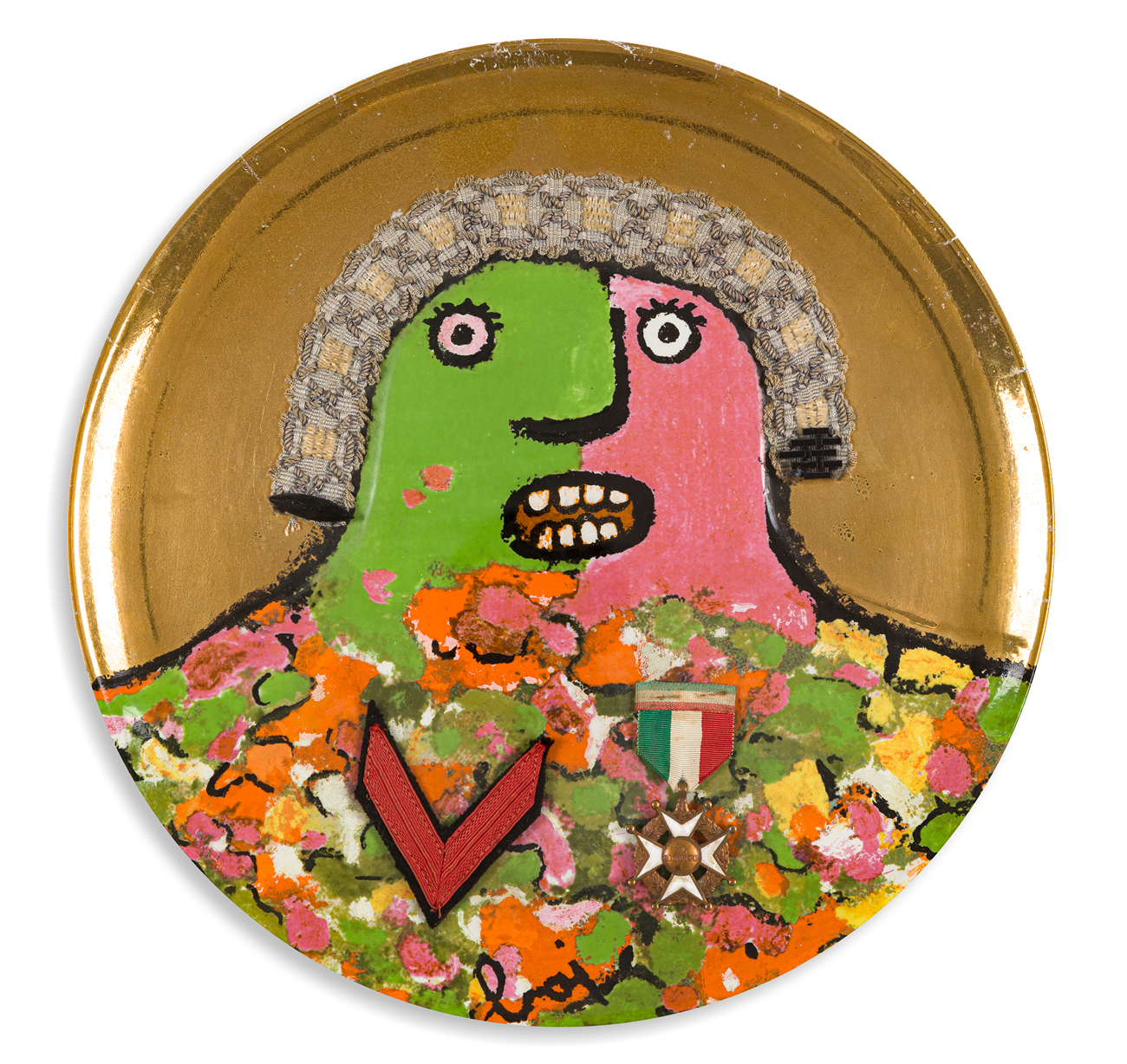 Piatto in ceramica smaltata e collage