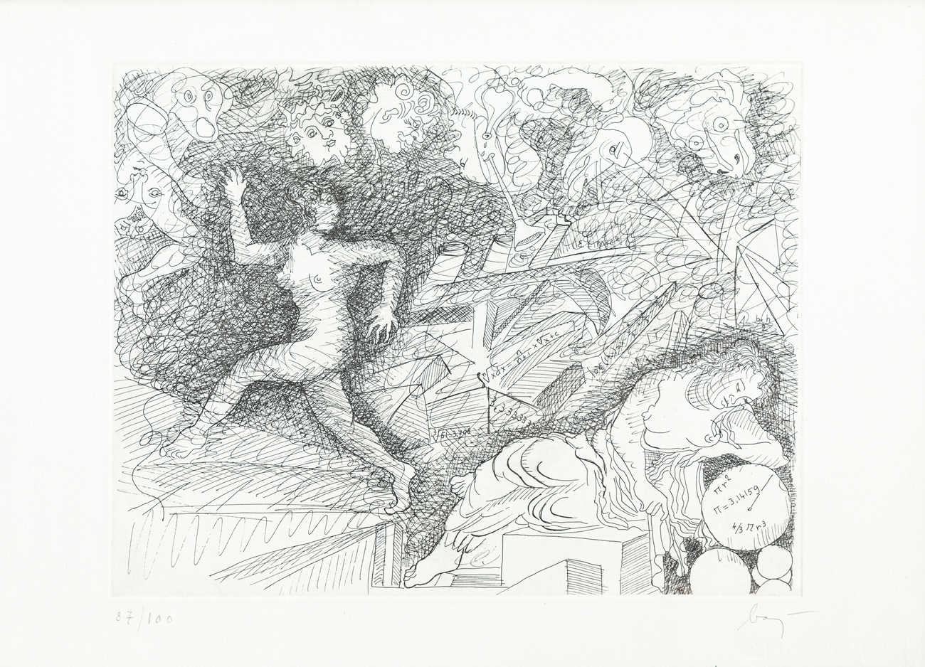 Firma e numerazione (Esemplare 87/100) a matita al fronte