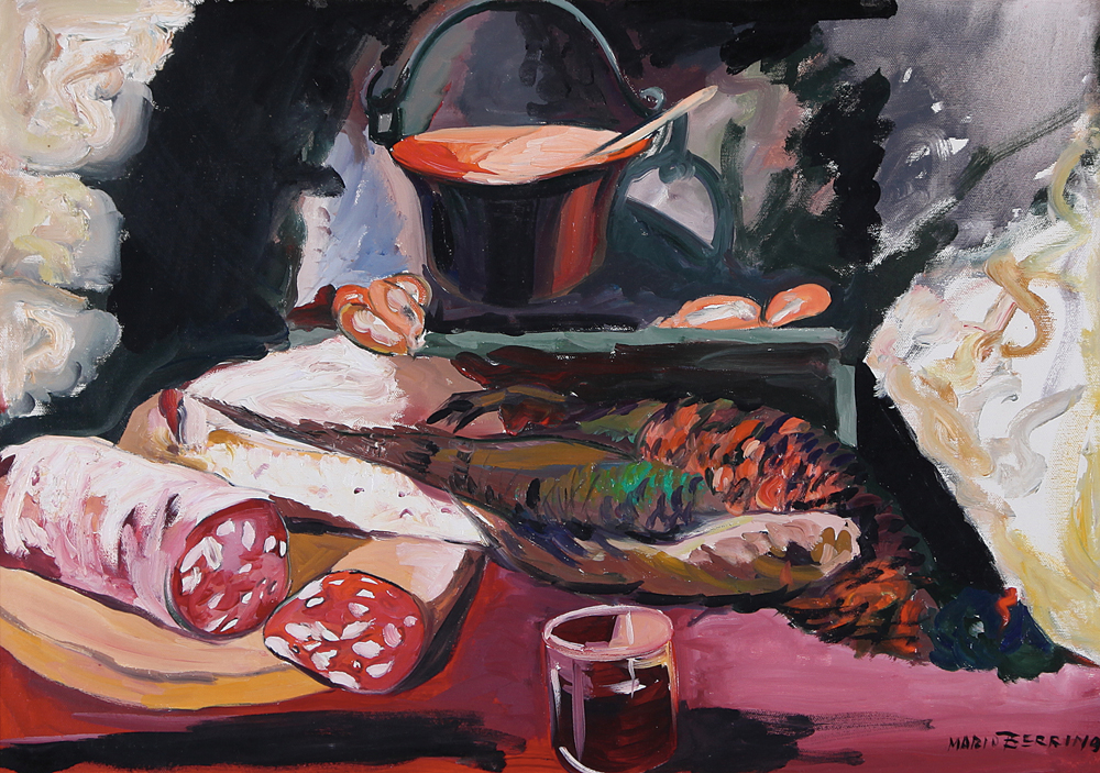 MARIO BERRINO Alassio 1920 - 2011 Natura morta olio su tela 50x70, firma in basso a destra, dichiarazione d'autenticità dell'artista datata 1996 su foto.