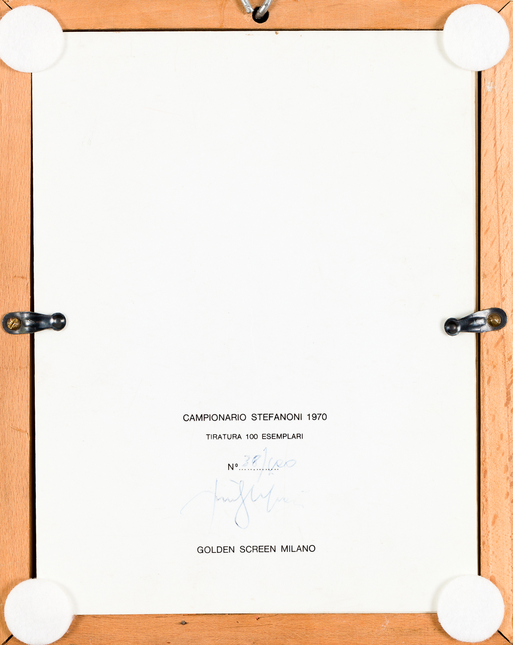 Firma e numerazione (Esemplari 38/100) a penna al retro della decima lastra