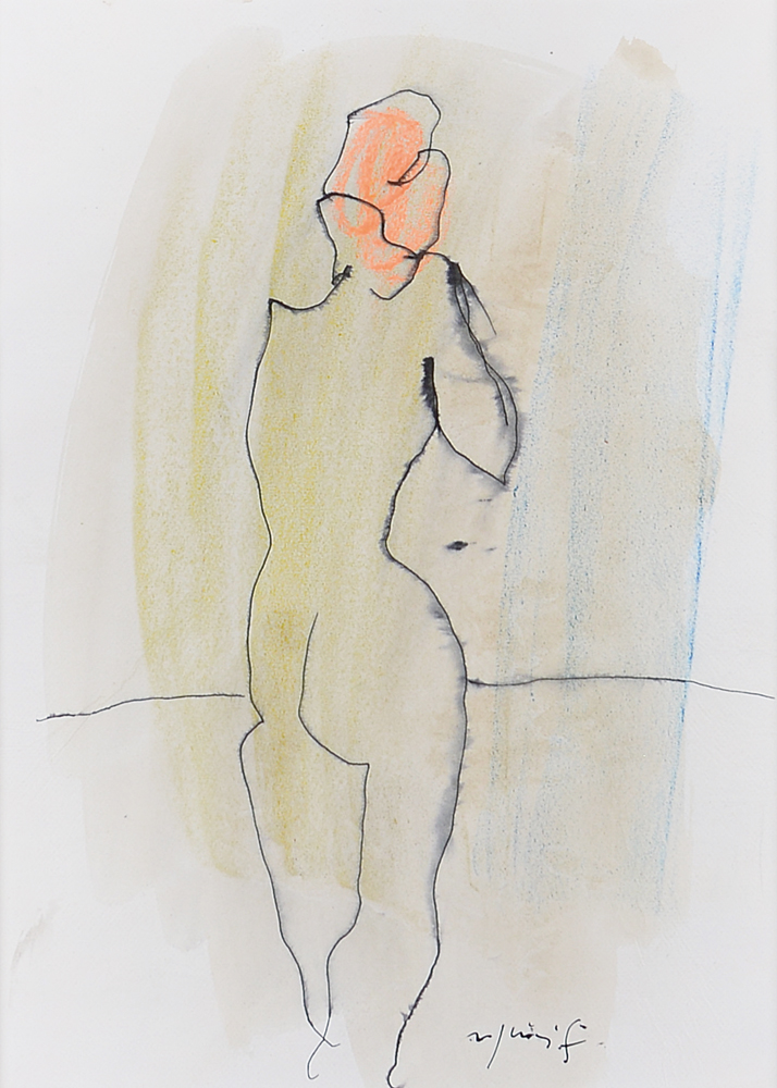 FRANCO ROGNONI Milano 20/09/1913 - Milano 11/03/1999  Nudo tecnica mista su carta intelata cm. 29,5x21, firma in basso a destra, dichiarazione d'autenticità dell'artista su foto.