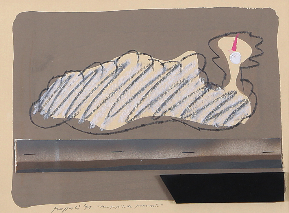 CONCETTO POZZATI Vo' Vecchio (Pd) 01/12/1935 Impossibile paesaggio, 1991 tecnica mista e collage su carta cm. 25x35, firma, titolo e anno in basso, dichiarazione d'autenticità dell'artista su foto.