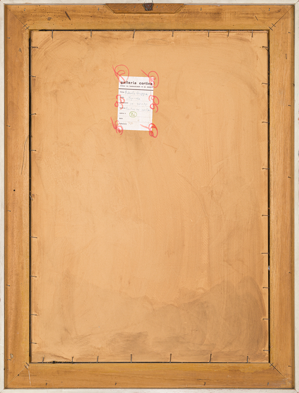 Etichetta e timbri della Galleria Cortina (MI) al retro della tavola protettiva