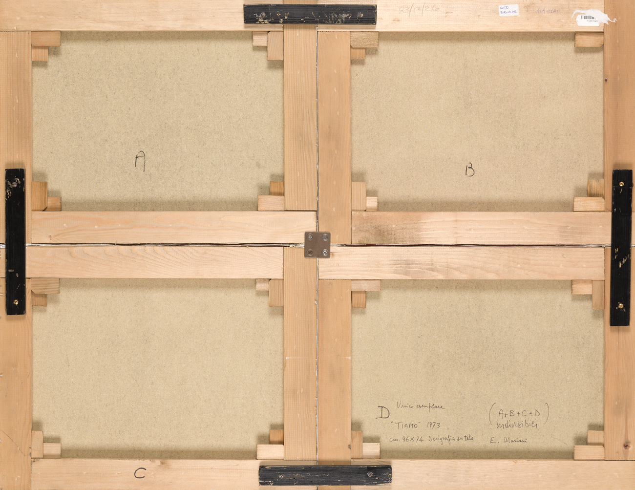 Firma, titolo, misure, datazione e tecnica al retro del quarto elemento