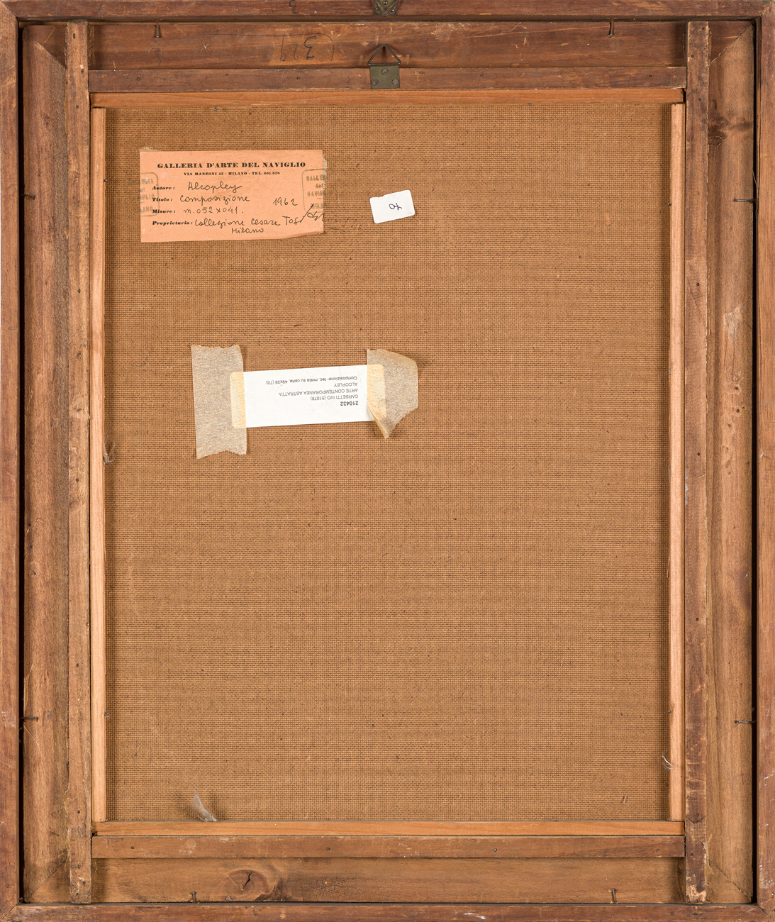 Etichetta della Galleria del Naviglio (MI) al retro